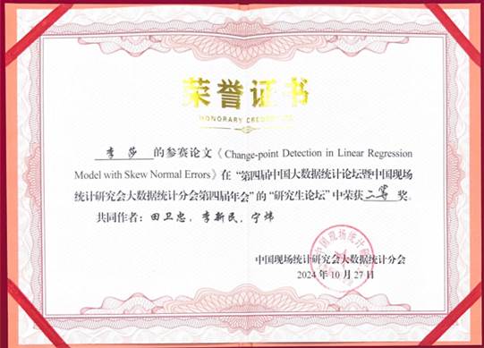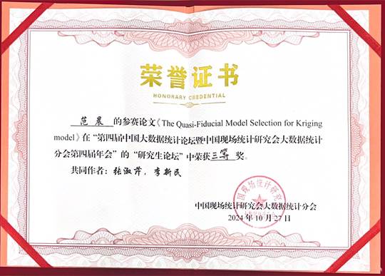 公司师生参加第四届中国大数据统计论坛暨中国现场统计研究会大数据统计分会第四届年会并获优秀论文奖