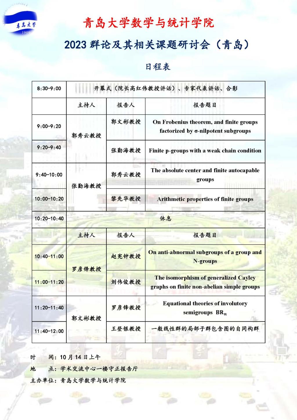 2023群论及其相关课题研讨会(青岛)