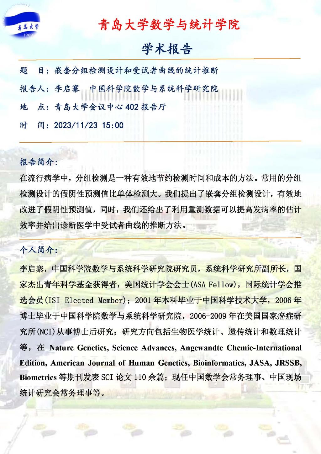 嵌套分组检测设计和受试者曲线的统计推断