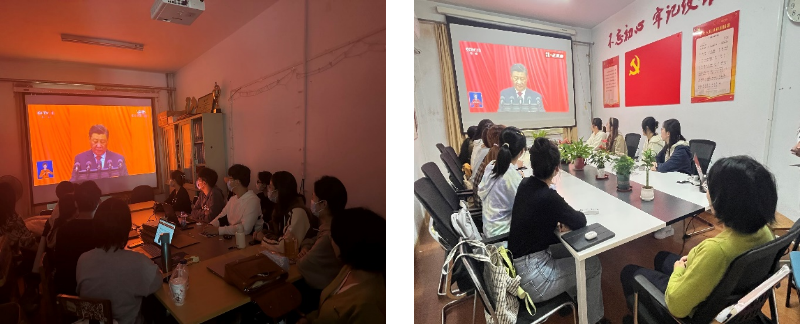 10月16日上午, 9428cn太阳集团古天乐本科生党支部全体党员在励行楼218和117会议室,党员发展对象在宿舍集中收看收听在北京人民大会堂隆重召开的中国共产党第二十次全国代表大会盛况。