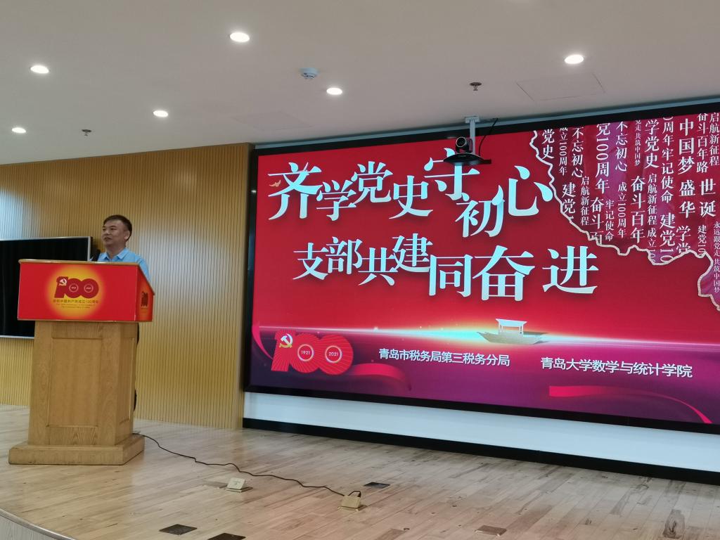 7月14日上午,数学与统计公司与青岛市税务局第三分局联合开展党建共建第二次活动。这是双方继此前签署党建共建协议之后的首次共建活动。公司党委书记姜永杰、副书记张雪蕾、员工党支部书记朱雨彤以及20名优秀员工代表共同参加此次共建活动。青岛市税务局第三分局局长王长江等领导同志热情接待。