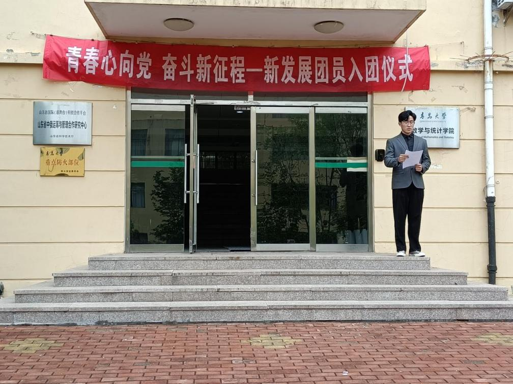 张瀚为发展团员宣读《中国共产主义青年团章程》中有关团员权利与义务等相关内容,强调各位新团员要树立崇高的理想,明确团的任务,遵守团的章程,履行团员义务,在学习和生活中关心同学、帮助同学,尽心尽力地为班级、为公司、为社会做贡献,努力做一名合格的共青团员。