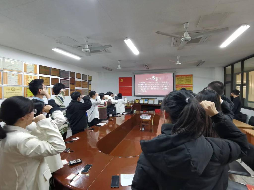 支部书记朱雨彤带领支部全体党员重温入党誓词,让党员们重温入党初心,回忆入党过程。
