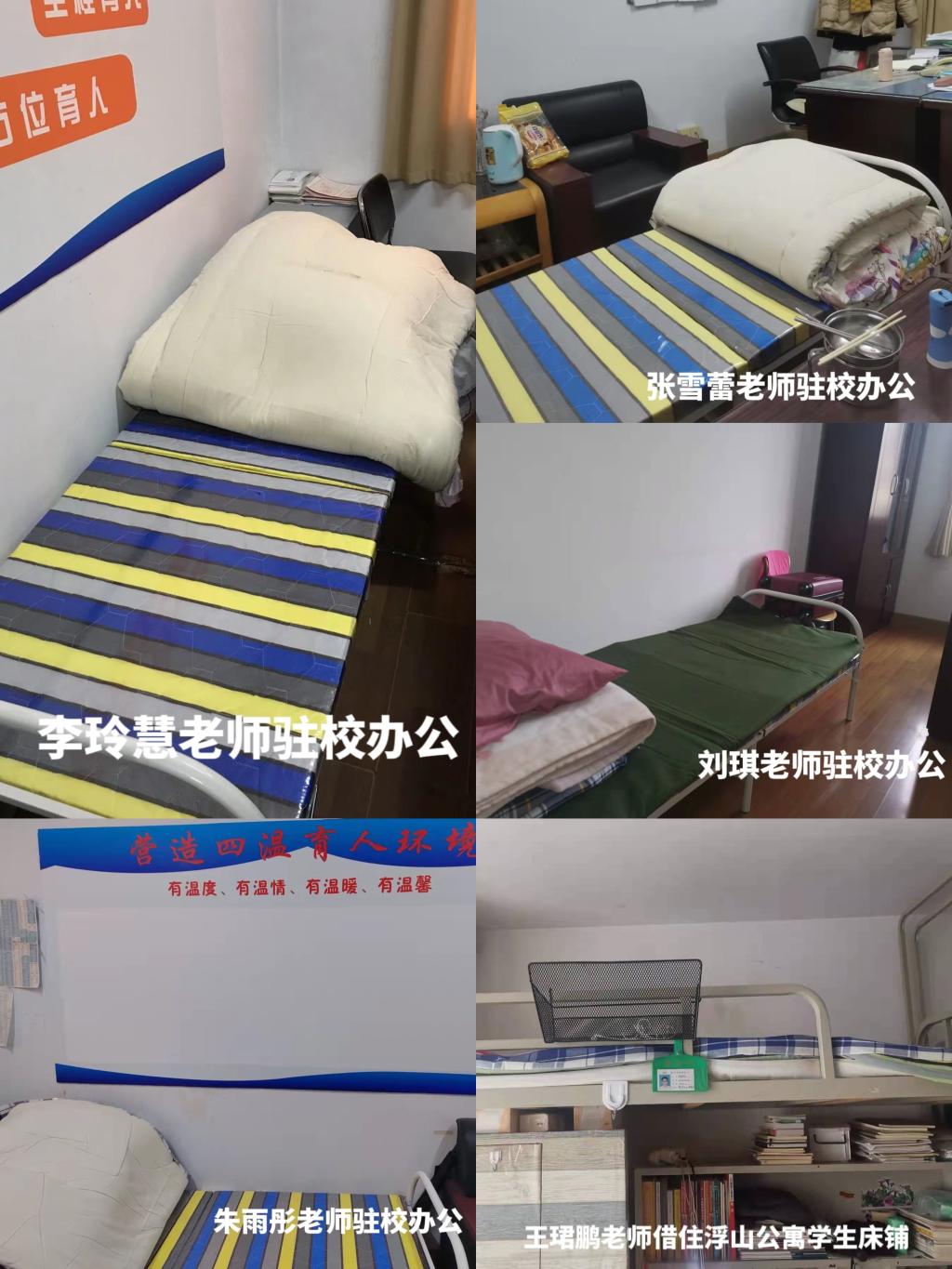 接到封校指令后,公司值守老师们安顿好孩子,备好行装,驻扎进校,每天吃住在办公室。王珺鹏老师更是临时受命成为浮山公寓的“副区长”,住在员工宿舍,成为员工的“定心丸”。