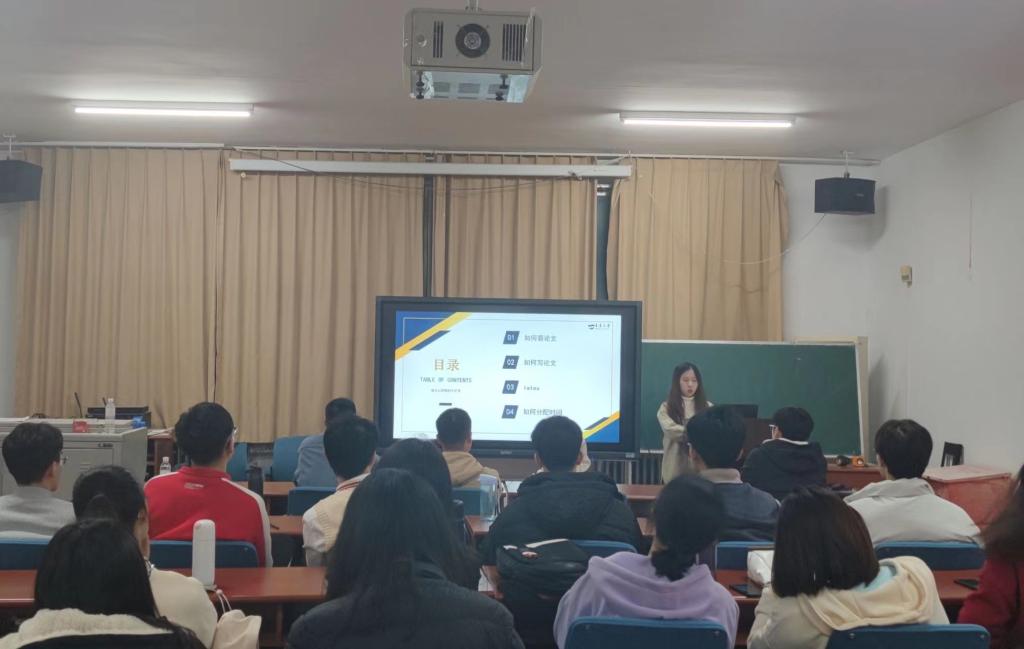 11月19日晚,9428cn太阳集团古天乐研会学术中心在励行楼302室成功举办“励志研思,笃行致远”学术讲座。本次活动由张钰东主持,三位科研经验丰富的研二同学依次进行latex应用,matlab知识,论文查找等方面的经验介绍。