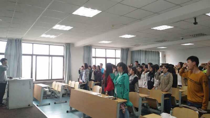首先,班主任严文海老师给全体同学召开了一场别开生面的“不努力,枉青春”为主题的团会。为同学们今后的学习指明了方向,然后大家就“先选择考研还是就业”的问题展开了思想大讨论。会后,同学们在团支书的带领下重温了入团誓词,并用手抄报的形式献礼五四,致敬青春!大家纷纷表示要继续发扬“五四”精神,同筑青大梦,共圆中国梦!