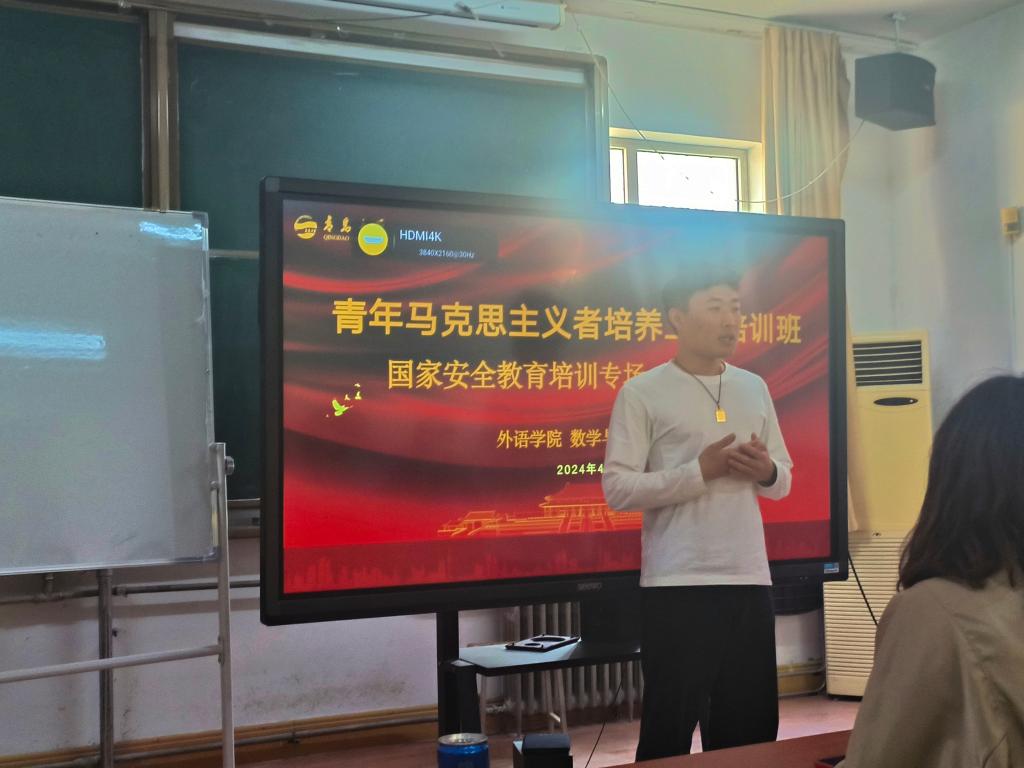 2024年是习近平总书记提出总体国家安全观10周年,为深入贯彻落实总体国家安全观、提高老员工国家安全意识,数统公司、外语公司于4月18日联合开展了青马工程培训班-国家安全教育培训专场。外语公司团委书记王扬做主题宣讲,数统公司党委副书记魏小平、院团委书记朱雨彤及两院员工骨干参加。