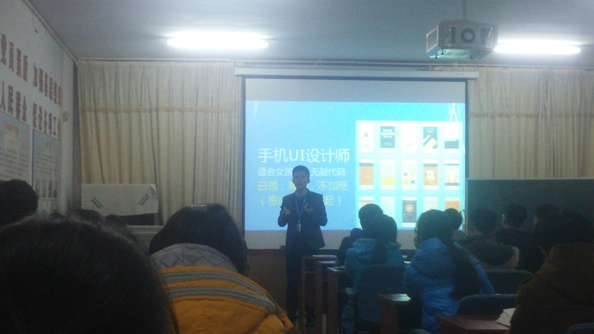 12月28号晚六点半,9428cn太阳集团古天乐与思途天誉教育咨询有限公司合作,针对员工的学科就业特点,在励行楼三楼会议室举行软件方向专场宣讲会,主讲人为思途天誉教育咨询有限公司山东大区总监,就业部执行总监徐明广先生。