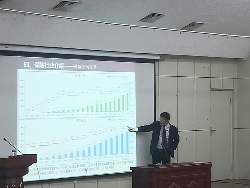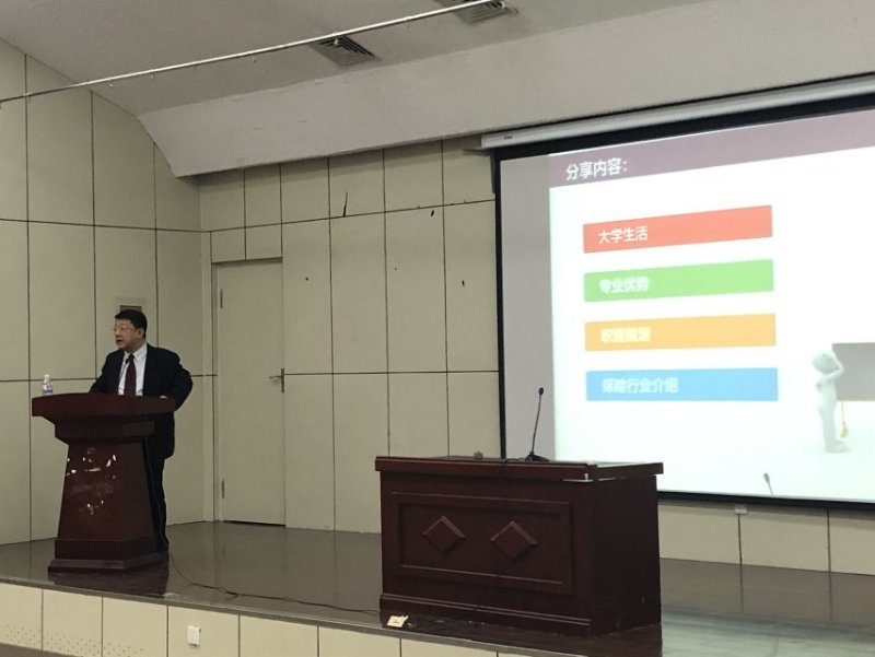 丁澎,88级应用数学专业优秀员工,先后任职各大中型财产保险公司,现任永诚保险总公司车险及个险运营部负责人,曾荣获保险经理人杂志年度“十大保险经理人”称号。他结合自己的学习和工作经历,首先用诙谐幽默的语言向大家畅谈自己丰富多彩的老员工活,阐释了老员工应该具备的能力和品格,向大家介绍了用人单位的选人招聘原则、保险行业的相关知识以及数学功底的重要性。他在考研和入党方面也给同学们提供了宝贵的经验。最后在提问环节,丁澎热心为同学们解答了考研就业、求职竞聘、行业发展等问题。
