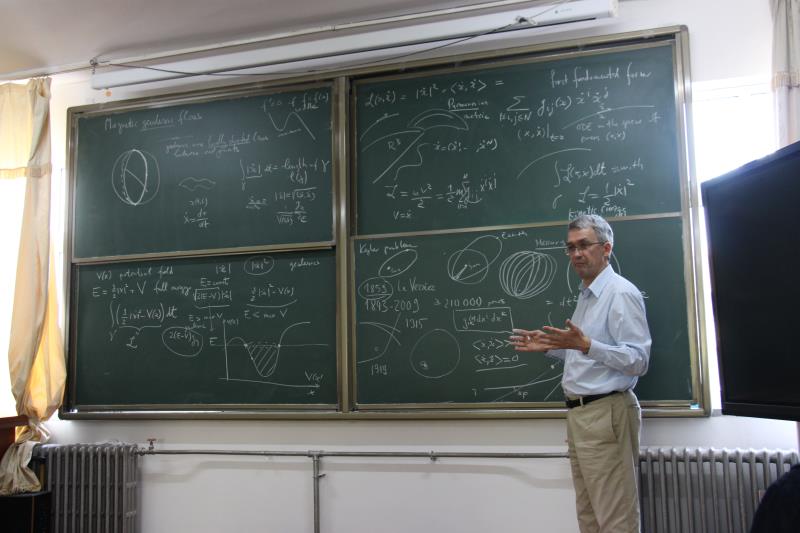 201859日下午15:40,达依曼诺夫教授在浮山校区励行楼三楼会议室做了题为Magnetic geodesic flows的报告,报告会由经理高红伟教授主持,本院教师、研究生以及本科生参加报告会。