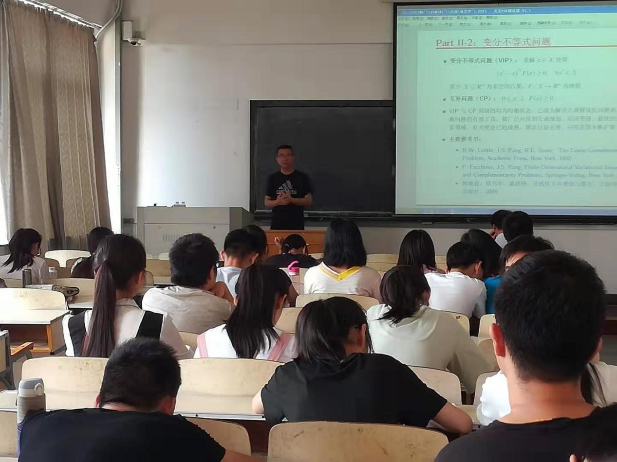 林贵华教授首先对均衡问题进行了介绍,包括均衡问题的数学刻画以及求解方法。然后重点介绍了随机变分不等式、均衡约束数学规划、主从博弈、广义纳什均衡等与均衡问题相关的优化问题及其在模型和连续优化算法方面的研究进展。林贵华教授指出随机变分不等式问题相对简单且研究历史较短,所以具有较大的研究机遇和发展空间;而其它三类问题都是结构非常复杂的优化问题,相关研究具有挑战性,但由于它们具有广泛的应用背景,所以也具有重大的研究意义。最后,林贵华教授对最优化建模与方法做了介绍。主要从优化问题的一般形式,优化模型分类以及具体模型的建立与求解等方面进行了讲解。