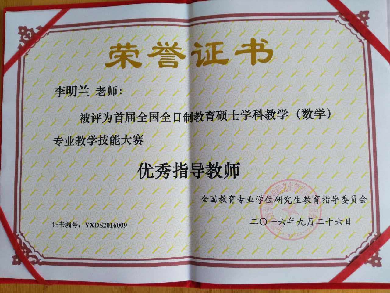 为展示全日制学科教学(数学)专业教育硕士职业能力、交流培养经验、提高培养质量,第一届全国全日制教育硕士学科教学(数学)专业教学技能大赛(决赛)于9月24日-26日在山东省烟台市鲁东大学举行。公司李明兰老师指导的员工王雅朦荣获一等奖,李明兰老师被评为“优秀指导教师”。这一成绩的取得展现了公司研究生职业能力培养的水平。