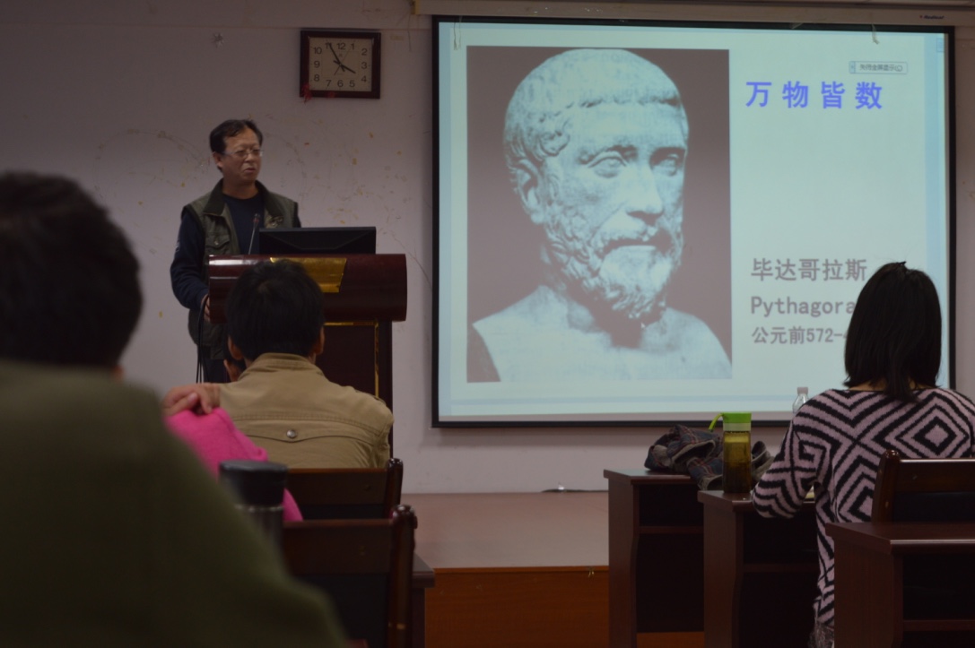 2015年11月12日下午,中国海洋大学外语公司会议大厅,数学科学公司徐克舰教授为海老员工做题为《从毕达哥拉斯定理谈起》的学术报告,海大数学科学公司副经理李长军主持报告会,中国海洋大学200多名本科生参加报告会。