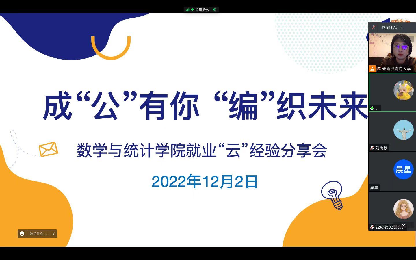 此次就业“云”经验分享交流会,为有计划选择考公、考编的同学们提供了宝贵的经验,更促使公司学子对当今就业形势和自身就业方向有了更清晰的认识。