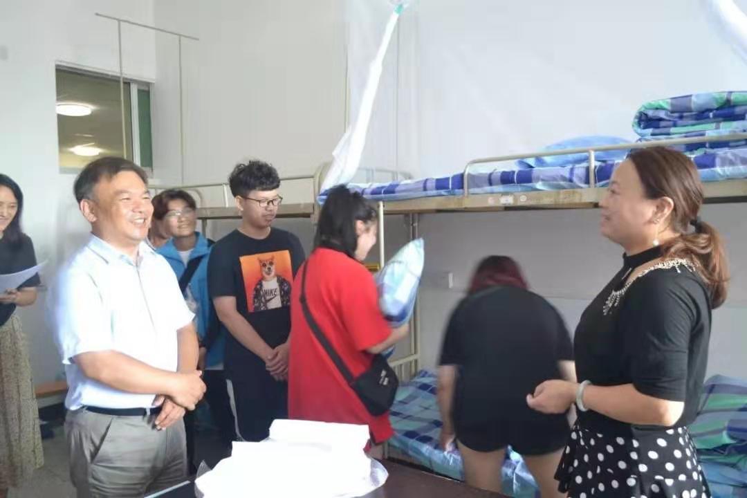 公司党委副书记张雪蕾和2019级辅导员李玲慧老师深入学生宿舍,与新生及其家长沟通交流,关切的询问了解新生家庭及来校情况,要求宿舍之间要互相帮助,互相包容,营造和谐的宿舍文化,形成良好的宿舍风气,争取打造考研宿舍。