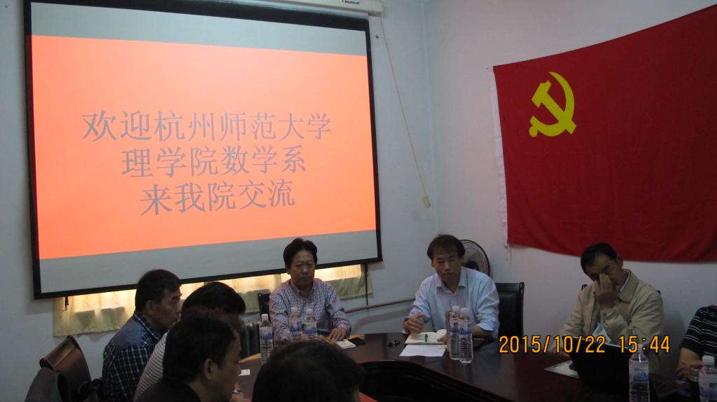 10月22日下午,杭州师范大学理公司教学经理詹士昌教授、数学系系主任申建华教授一行十人来到数学科学公司交流访问。公司党委书记陈学文、经理高红伟以及各系主任参加交流会。