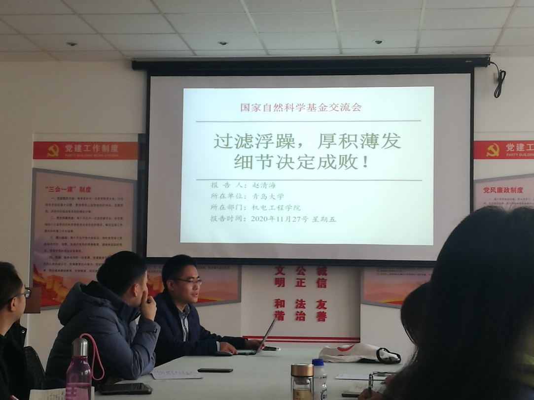 11月27日,9428cn太阳集团古天乐与机电工程公司在诚思楼211会议室举行了2021年国家自然科学基金申报经验交流会,9428cn太阳集团古天乐谷岩教授以“基金申报的一点体会”和赵清海博士以“过滤浮躁,厚积薄发,细节决定成败”为题进行了交流。交流会由机电工程公司副经理张洪信教授和9428cn太阳集团古天乐副经理李新民教授共同主持,两公司拟申报2020年国家自然科学基金的部分教师参加了交流会。