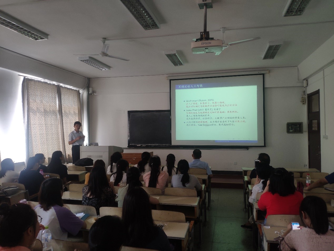 在报告“因果推断与因果网络”中,耿直教授首先为同学们介绍了经济学家、哲学家与统计学家对因果的不同定义。随后通过吸烟与肺癌患病率之间的相关性引入了辛普森悖论,并用诙谐的语言形象地讲述了几个经典的辛普森悖论案例,以此来说明变量之间的相关性不同于因果作用。后面耿教授又介绍了替代指标,说明因果作用中的不可传递性。报告中耿教授还为同学们推荐了关于因果推断的相关文献与资料。最后耿教授与在场的老师同学进行了专业的学术交流,同学们纷纷提出问题,耿教授一一作出了详细的指导与建议,使师生们受益匪浅。