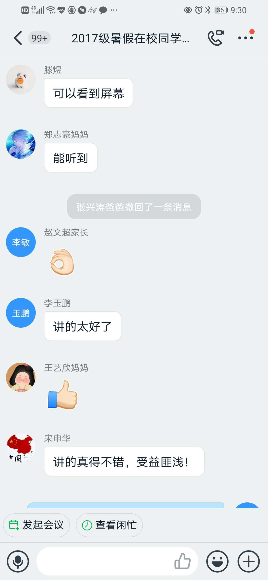 历时一个半小时的家长会议结束后,各钉钉群的家长纷纷留言,在对公司老师送上献花道声“辛苦、谢谢”的同时,表示了期待经常参加类似家校沟通活动的意愿,也希望与公司一起,携手同步,为孩子的进步成长共同努力!