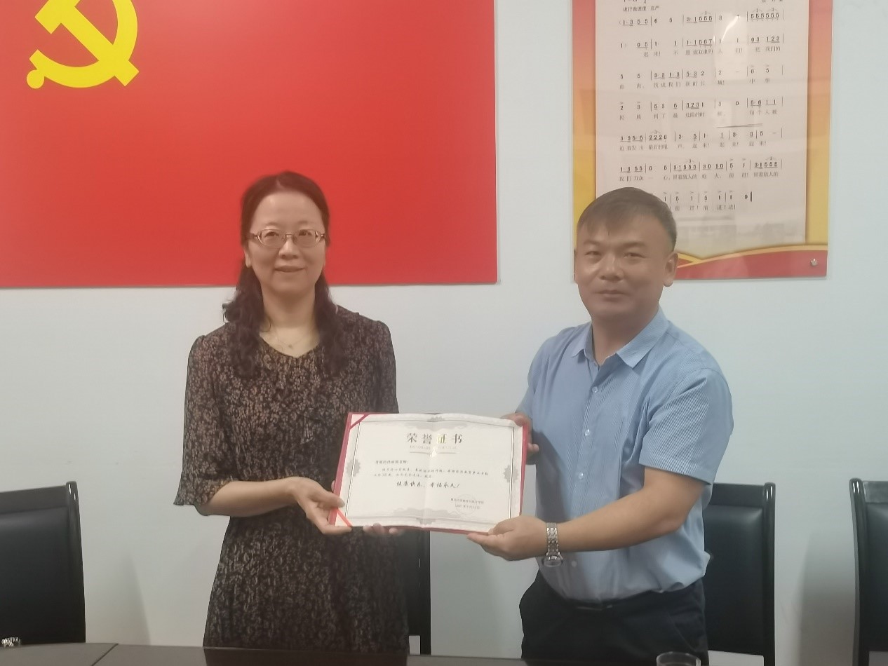 姜永杰向退休教师孙丽强颁发荣退证书,并代表公司表示祝贺,对她扎根教育事业38年,认真履行教书育人职责,长期在教育工作岗位上辛勤工作和做出的贡献表示感谢。他指出退休教师既是公司事业发展的建设者,又是公司历史发展的见证者。他们身上所展现出的崇高品质、教育情怀、工作作风和职业操守,都是公司宝贵的精神财富。希望孙丽强老师退休以后,保持身心健康,退休不褪色,离岗不离校,一如既往地关心支持公司工作,为公司的发展贡献智慧和力量。