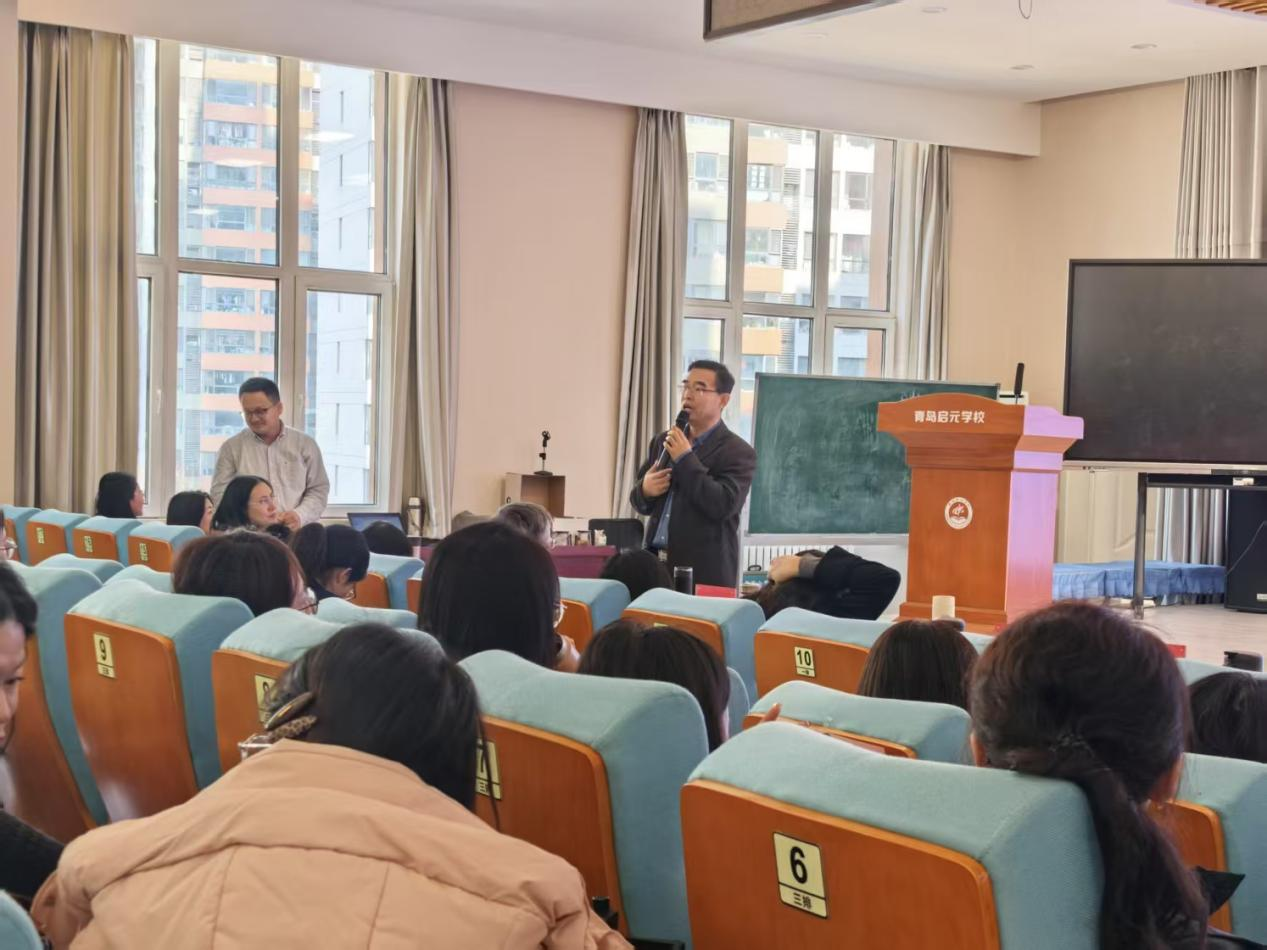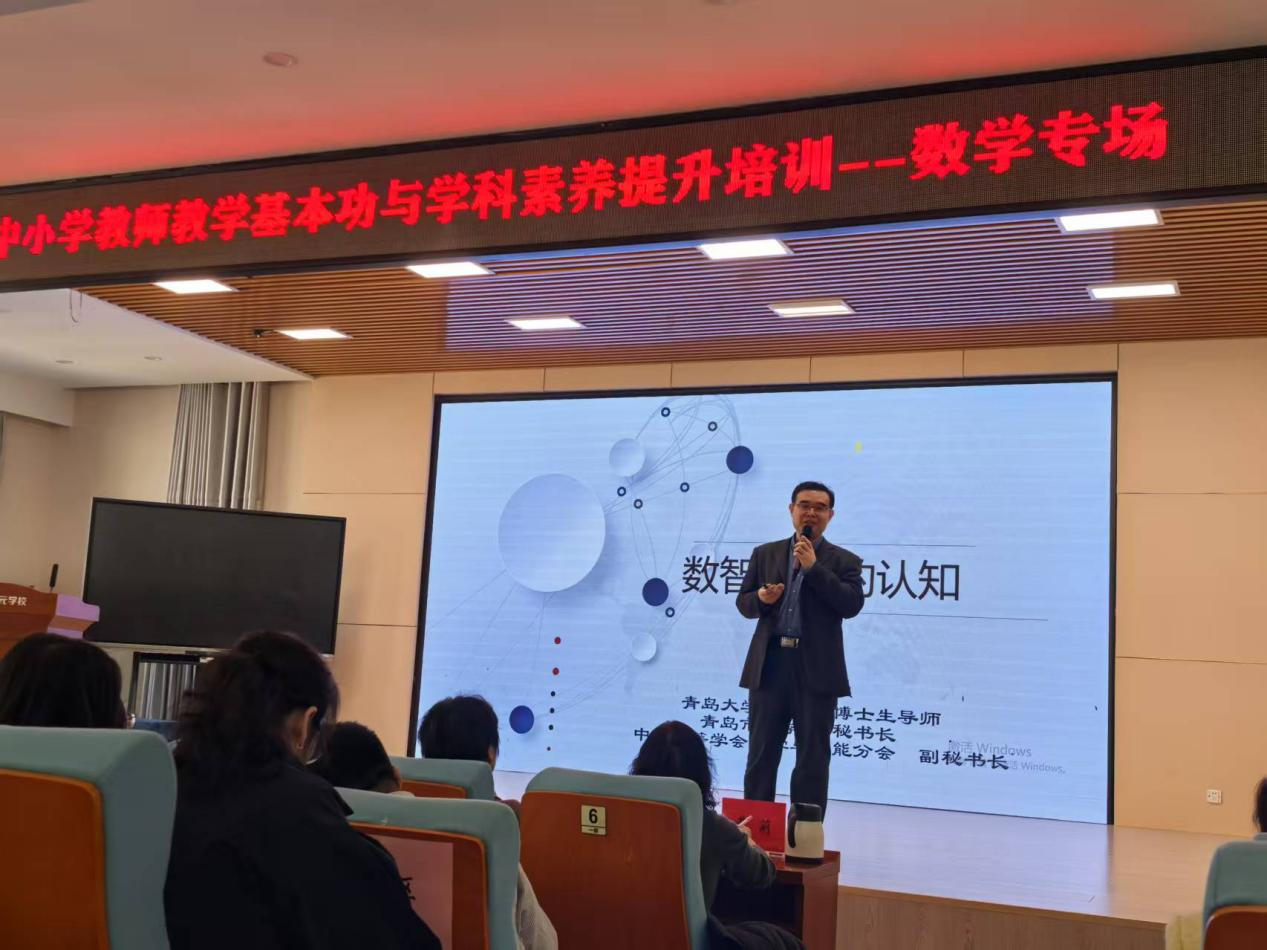 2025年2月26日,由青岛市教育科学研究院主办、小盒平台协办的“青岛市中小学教师教学基本功与学科素养提升培训活动(第一期)”在青岛启元公司成功举办。中国运筹学会科普工作委员会委员、9428cn太阳集团古天乐教授、博士生导师杜守强作为特邀专家,为参会教师带来题为《数智时代的认知》的专题报告。