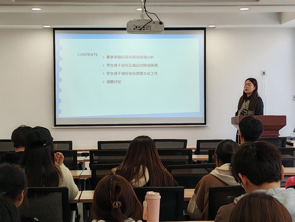 隋鹏蕾立足高校育人工作实际,系统解析春季学期网络舆情特点,从员工心理健康、就业实习压力到网络安全等热点问题进行深度剖析。她强调,员工骨干作为公司建设的中坚力量,需着力提升网络素养与信息甄别能力,建立“知行合一”的应急处置机制。在宣传工作维度,她鼓励同学们以热爱为原动力,创新运用新媒体技术,打造具有公司特色的文化传播品牌。